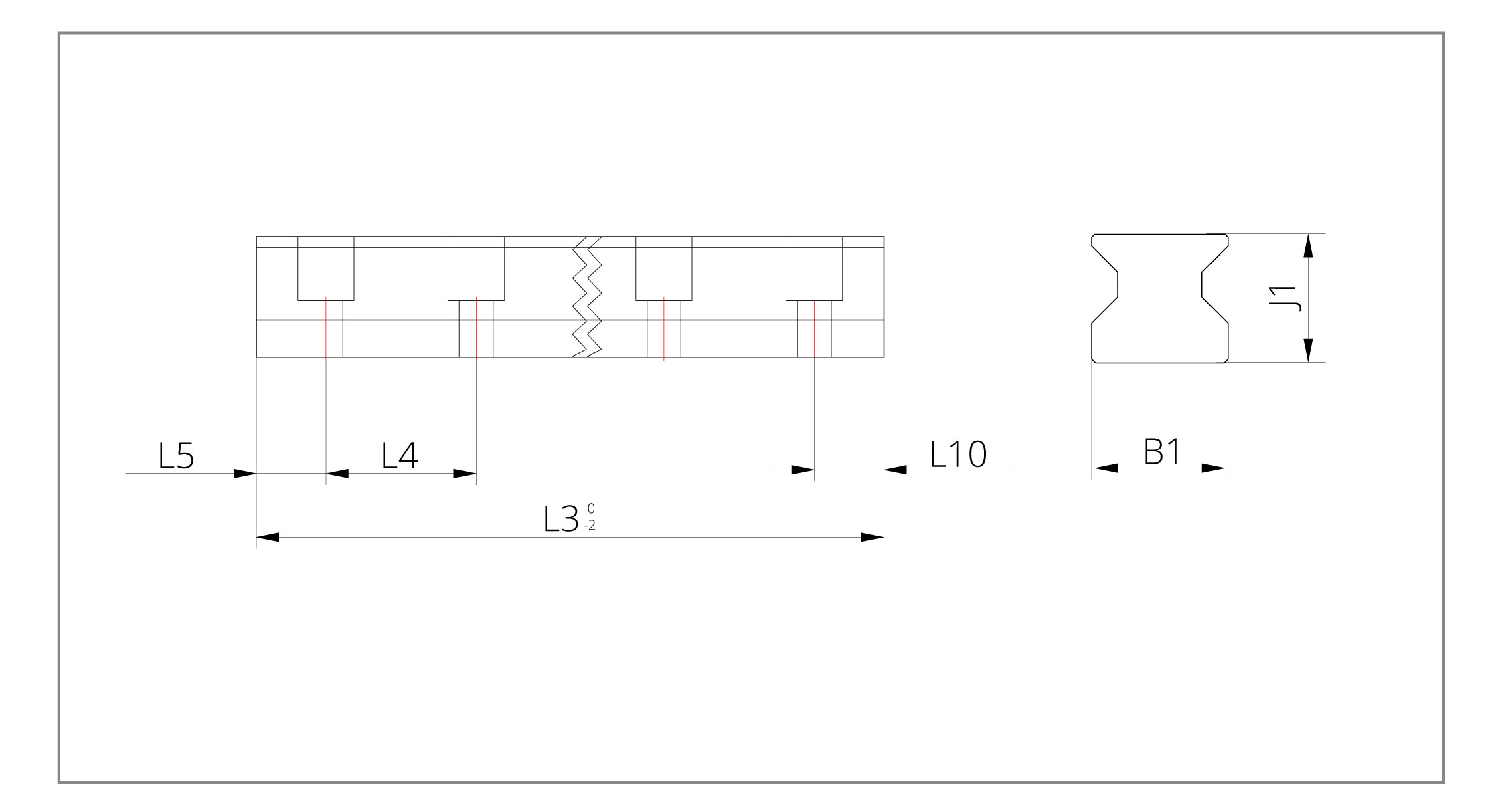 Schienenlänge und Endmaße können auf Wunsch angepasst werden.